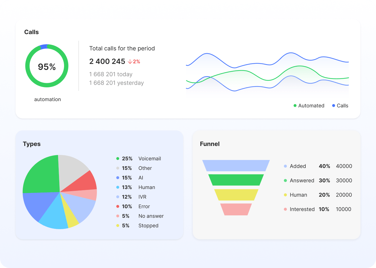 +30%Answered callsx3Warm sales calls20+Hours/week freed up0New hires needed Sales IT outsourcing Outbound cold calling | Lead generation“We used byVoice for our cold outreach campaigns promoting IT outsourcing services. Within two weeks, the AI agent had already passed a month’s target. Now it handles the first contact with leads, and our team only steps in for real prospects.”AlexHead of Sales